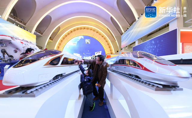 12月31日,观众在“砥砺奋进的五年”大型成就展上参观“复兴号”列车模型。当日,“砥砺奋进的五年”大型成就展圆满落幕。新华社记者陈晔华摄