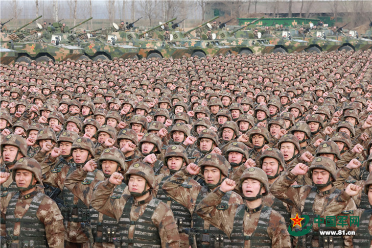 1月3日上午,中央军委隆重举行2018年开训动员大会,中共中央总书记、国家主席、中央军委主席习近平向全军发布训令。这是主会场部队官兵宣誓。