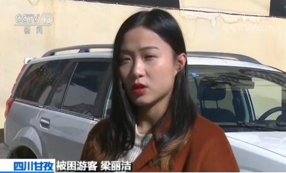 被困游客刘颖:“积雪最深处达到了半米左右,我们的车被困动弹不得。到了晚上20点左右,车里面也没有食物,而且也没有信号,当时心情是非常绝望的,没想到之后竟然有人来敲窗户,然后看到窗外有光亮,很激动。”