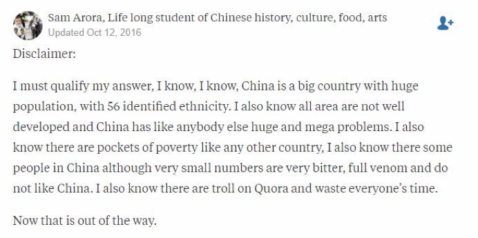 这位印度老哥确实不是第一次在Quora上夸赞中国了。不久前,在一个“我认为中国一直是个爱好和平的国家,我错了吗?”的问题下面,Sam Arora也用自己的亲身经历为大家证明中国是一个多么爱好和平的国家。