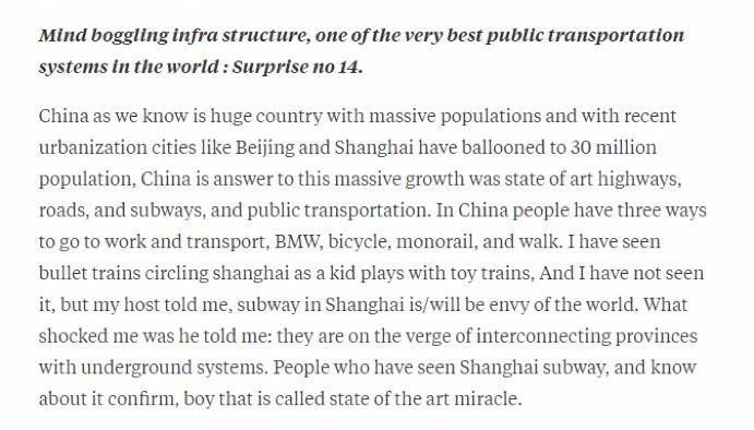 可是,在Quora等平台上,西方网友对中国的描述却似乎不那么负面,