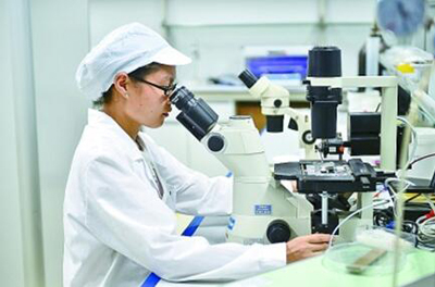 在位于广州高新技术开发区的实验室里,科研人员正在进行显微胚胎注射。新华社发