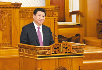 2014年8月22日,国家主席习近平在蒙古国国家大呼拉尔发表题为《守望相助,共创中蒙关系发展新时代》的重要演讲 (新华社记者庞兴雷 摄)