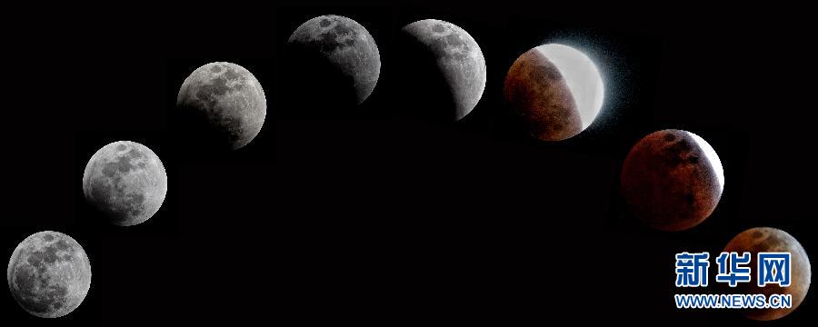 这是1月31日在北京拍摄的月全食从“初亏”到“食既”的过程(拼版照片)。当日是丁酉鸡年最后一个满月夜,天空中上演月全食大戏。我国大部分地区都能欣赏到一轮“红月亮”高悬夜空的迷人景象。新华社记者李欣摄