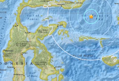 印尼马鲁古海南部海域发生5.5级地震,震源深度51.2公里。(图片来源:美国地质勘探局网站截图)