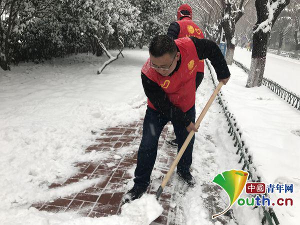 图为河南漯河志愿者在除冰铲雪。团中央青年志愿者行动指导中心供图