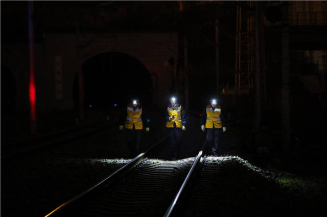 2月1日凌晨,重庆车辆段5T维修工作业班组在作业结束后复查作业区域。这个班组负责维护修理动车组运行动态图像检测系统,为了解车辆实时状况提供直观依据。新华社记者刘潺摄