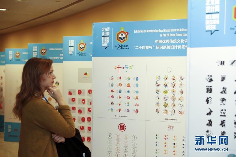 应联合国太极文化学会邀请,北京国际设计周、北京合众美华教育投资有限公司当晚在联合国总部大楼一层举行“二十四节气”创意作品与文化习俗交流活动。以“二十四节气”为主题的29套专业组优秀作品、6套专业机构委托设计作品以及50套青少年组作品在此进行了展示。