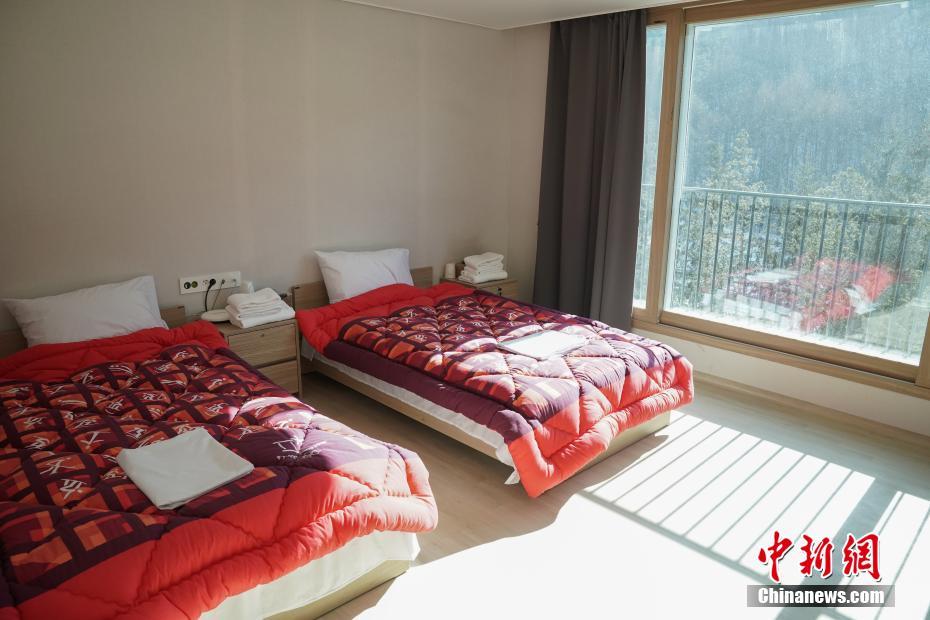 2月6日,2018年平昌冬奥会平昌奥运村对媒体开放。据悉,本届冬奥会设置平昌、江陵两处奥运村。平昌奥运村为雪上项目运动员驻地,将接待超过3500名雪上项目的运动员、教练及随行官员。图为对媒体开放的平昌奥运村运动员房间样板间。中新社记者 崔楠 摄