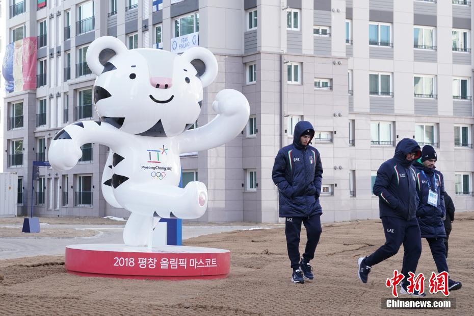 2月6日,2018年平昌冬奥会平昌奥运村对媒体开放。据悉,本届冬奥会设置平昌、江陵两处奥运村。平昌奥运村为雪上项目运动员驻地,将接待超过3500名雪上项目的运动员、教练及随行官员。图为平昌奥运村中的吉祥物雕像。中新社记者 崔楠 摄