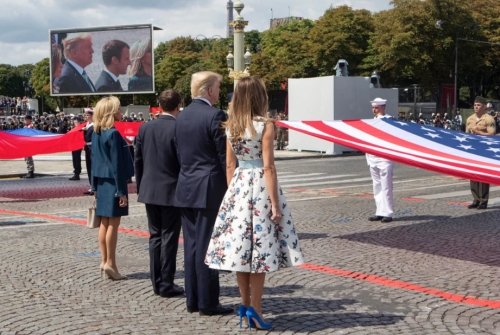 特朗普与马克龙在2017年7月观看阅兵仪式(来源:法新社)