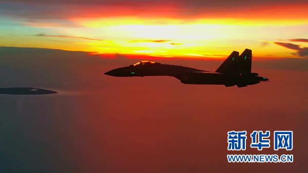 中国空军苏-35战机海上巡航(视频截图)。新华社发
