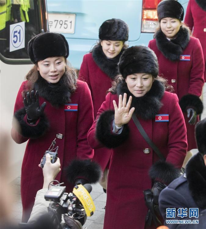 朝鲜拉拉队成员乘车到达韩国江原道麟蹄郡。新华社发 李相浩 摄图片来源:新华网