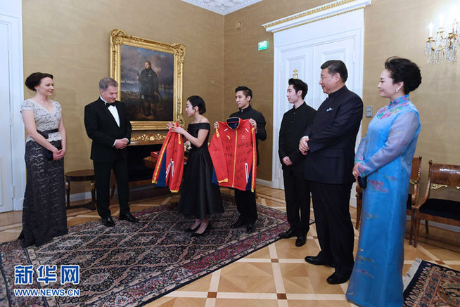 2017年4月5日,国家主席习近平和芬兰总统尼尼斯托在赫尔辛基共同会见刚刚参加完2017年世界花样滑冰锦标赛的中芬两国冰雪运动员代表。(图片来自:新华网)