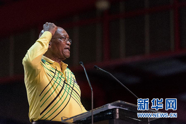 2月14日,南非总统雅各布·祖马发表全国讲话时宣布辞职。这是祖马在南非约翰内斯堡举行的非洲人国民大会(非国大)第54届全国代表大会上发言的资料照片(2017年12月16日摄)。新华社发(戴维·奈克尔摄)