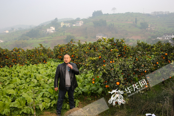 涪陵区南沱镇睦和村,脐橙和制作榨菜用的青菜头在田地里套种。记者石涛 摄