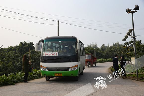 南沱镇睦和村,乡间公路干净整洁,不时有公共汽车经过。记者 石涛摄