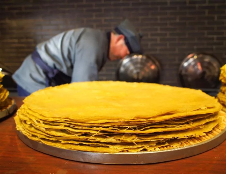 2018年2月13日。河北遵化。厨师在加工饹馇。天下人摄