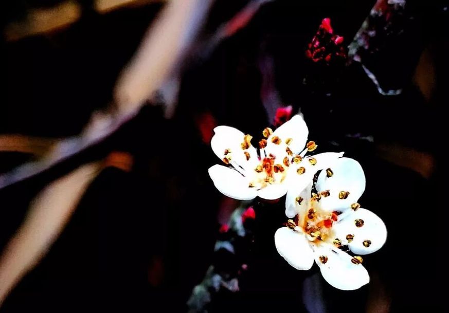 2018年2月16日。福建福州。两朵小花绽放在山道边灌木的枝头。雍正王朝 摄