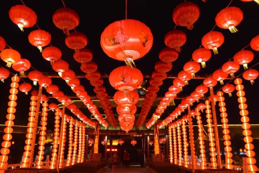 2018年2月10日。山东青州。红灯高悬迎新春,神州大地庆大年。红旗飘飘 摄