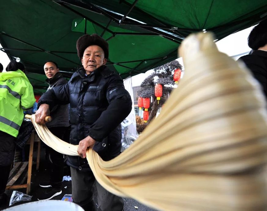 2018年1月28日。浙江仙居。一名民间艺人在手工制作麦芽糖。王华斌 摄