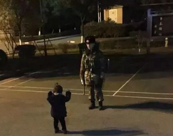 今晚是除夕,他又要站岗,女儿在家里哭着说‘要找爸爸’,我也是没办法,带她去站岗的地方看了一眼爸爸。