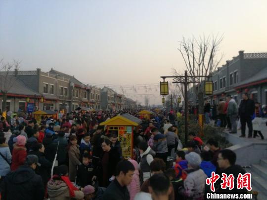 中新网石家庄2月17日电 (俱凝搏)正月里来是新年,百花盛开春满园。大年初一晚上的一场盛大电子烟花准时点燃引来6万多观众欣赏,同时也拉开了游客游古城的春游大幕。