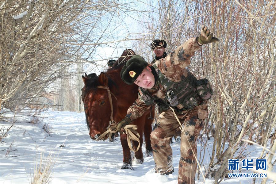 “西陲第一哨”斯姆哈纳边防连官兵在巡逻途中(2月1日摄)。新华社发(刘慎摄)