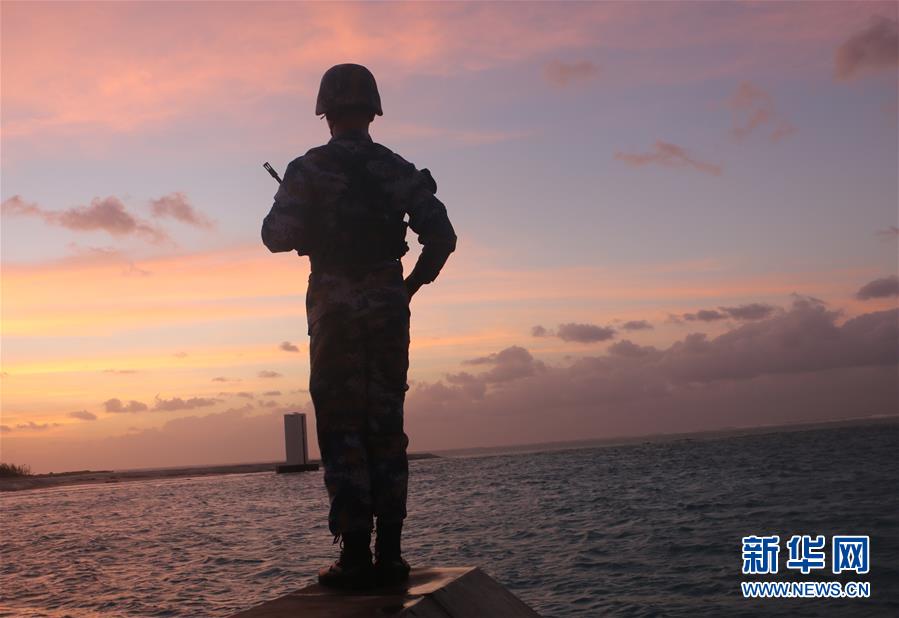 “南海第一哨”华阳礁守礁战士在站岗瞭望(2月6日摄)。新华社发