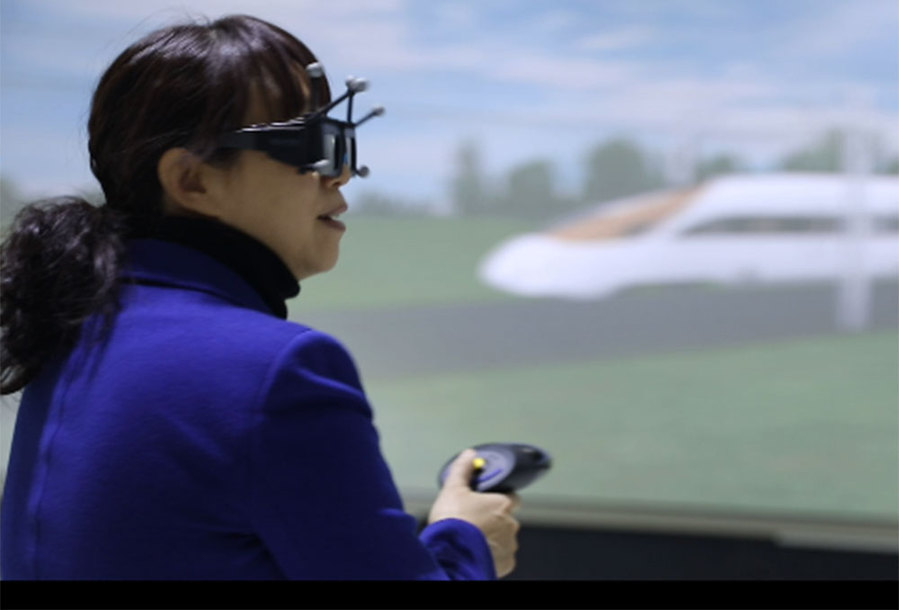 赵红卫在实验室观看高铁3D演示效果(摄影:李夏)