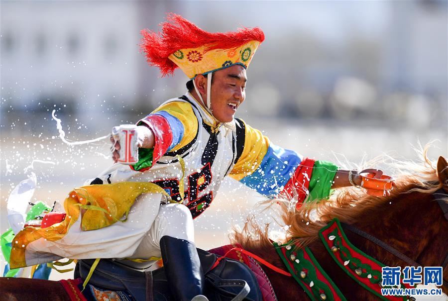 2月18日,骑手表演“马上敬酒”。新华社记者 晋美多吉 摄