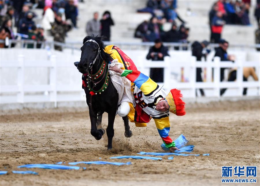 2月18日,骑手表演“马上拾哈达”。新华社记者 晋美多吉 摄