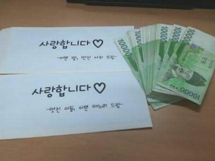 在韩国,压岁钱也叫“岁拜钱”,一般只给到孩子高中毕业之前。春节时,孩子们坐在一起,按照年龄大小轮流行大礼,年纪大的孩子会拿到更多的压岁钱。一般来说,小学生会收到5000至1万韩元((约30元至60元人民币))的红包,初中生和高中生可以拿到1万至5万韩元的红包。