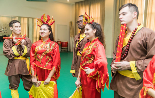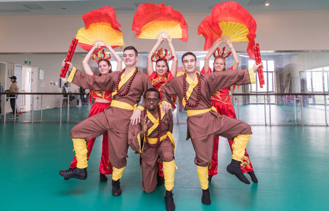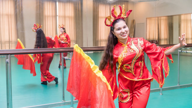 同样来自“跳蚤舞”表演队的吉尔吉斯斯坦大三交换生史军说:“一开始觉得脖子上挂着串珠晃动的舞蹈很有趣,后来学习了一个月左右的时间慢慢了解舞蹈背后的传说和故事,发现这也是一种感受并亲近中国文化的方式。”