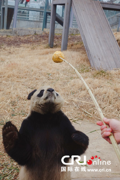 国际在线消息(记者陈彦)2月19日农历戊戌狗年正月初四,在山东省威海市刘公岛景区内,大熊猫“竹灵”和“宁宁”正在欢度它们到威海后的第八个春节。这一天,它们迎来了一批专程来陪它们过年的贵客。