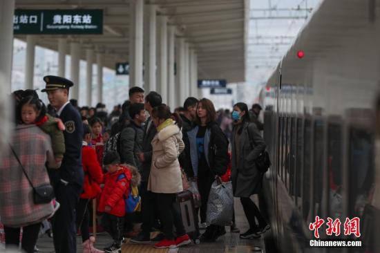 2018年春节长假接近尾声,车站客流增多。中新社记者 贺俊怡摄