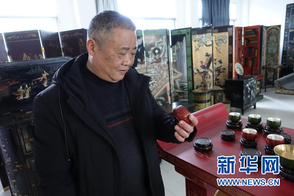新华网黄山2月23日电(卓越)漆器,即用漆涂在各种器物的表面上所制成的日常器具及工艺品、美术品,是中国古代在化学工艺及工艺美术方面的重要发明。福州脱胎漆器,厦门髹金漆丝漆器,广东晕金漆器,扬州螺钿漆器,北京剔红漆器......在众多地域制漆技艺中,徽漆作品更以其复杂的工艺、丰富变幻的肌理受到世人的关注,并被收入国家非物质文化遗产名录。春节期间,跟随“非遗”传承人、黄山市徽漆工艺有限公司总经理奚建辉一起,记者近距离感受了徽漆工艺那古老而神奇的魅力。