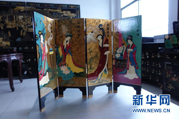 徽漆屏风“四大美女图”。新华网 卓越 摄
