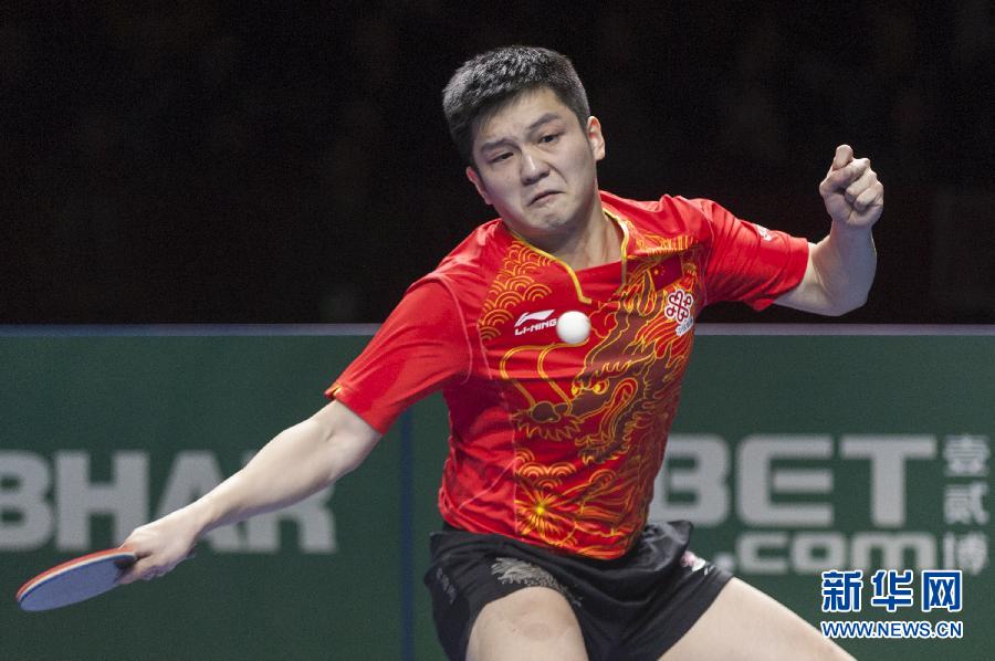 ↑2月25日,中国队选手樊振东在比赛中,樊振东在单打比赛中以3比0战胜日本队选手张本智和。新华社发(史蒂芬·程摄)