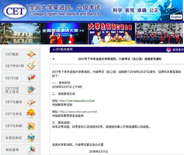据全国大学英语四、六级考试委员会办公室发布的通知,2017年下半年全国大学英语四、六级考试(含口语)成绩今天发布!