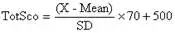 公式中TotSco表示总分,X表示每位考生常模转换前的原始总分,Mean表示常模均值,SD表示常模标准差。每次四、六级考试等值后的卷面分数都将参照此常模公式转换为报道分数。