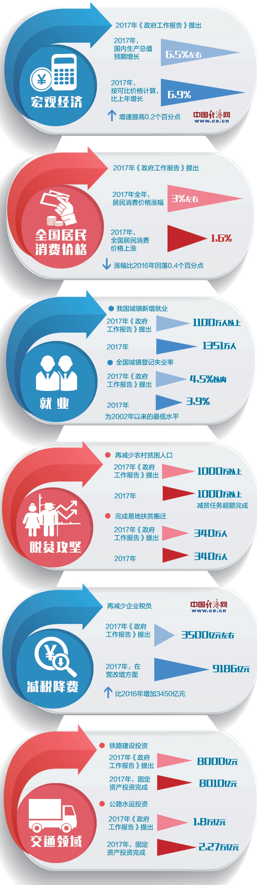 经济日报-中国经济网编者按惟其艰难,才更显勇毅;惟其笃行,才弥足珍贵。2017年是极不平凡的一年,在以习近平同志为核心的党中央坚强领导下,党中央、国务院坚持稳中求进工作总基调,我国经济发展独领风骚,深化改革多点突破,依法治国深入实施,人民生活继续改善,脱贫攻坚有力推进,国防和军队建设开创新局,全方位外交成果丰硕,从严治党全面推进。回顾2017年《政府工作报告》目标,一串串数字记录下各行各业奋斗的足迹。2018年是贯彻党的十九大精神的开局之年,是改革开放40周年,是决胜全面建成小康社会、实施“十三五”规划承上启下的关键一年,唯有继续保持奋斗精神、奋发姿态,才能在新时代破浪前行,才能交出人民满意的时代答卷——