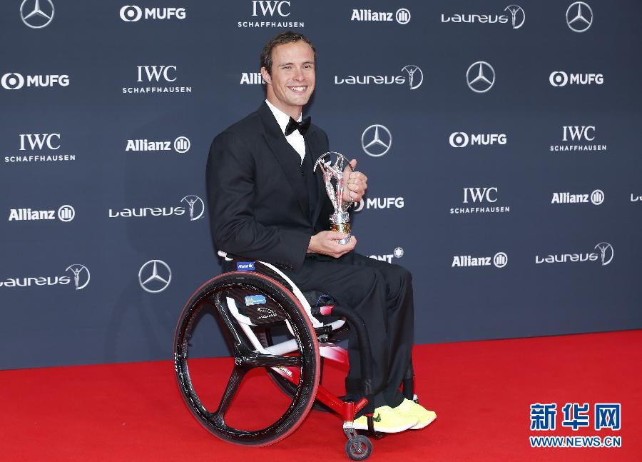 ↑2018年劳伦斯世界体育奖各奖项揭晓 2月27日,获得年度最佳残疾运动员奖的瑞士运动员马塞尔·哈格展示奖杯。新华社记者叶平凡摄