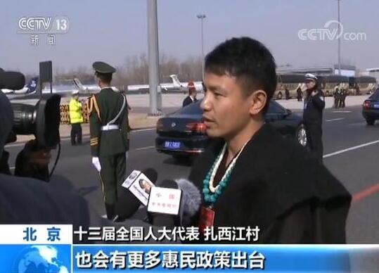十三届全国人大代表 扎西江村:我相信这次会议会给我们党和国家事业的发展开一个好的开头,也会有更多惠民政策出台,对于这个我非常期待。