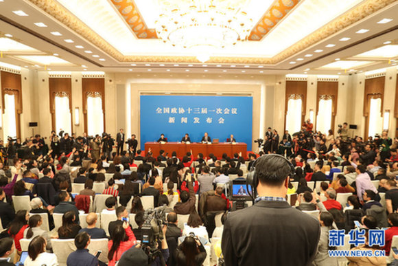 全国政协十三届一次会议新闻发布会于3月2日16:30在人民大会堂一层新闻发布厅召开,大会新闻发言人王国庆向中外媒体介绍本次大会有关情况并回答记者提问。