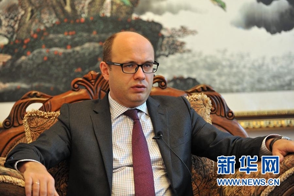 图为白俄罗斯驻华大使鲁德接受新华网记者专访。新华网发徐昕摄