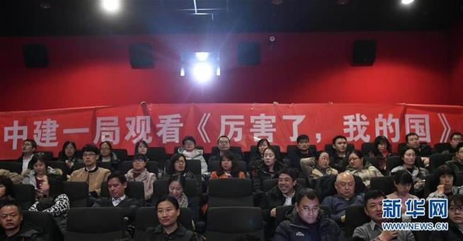 3月2日,在北京千禧街中影国际影城,中建一局员工观看纪录电影《厉害了,我的国》。新华社记者 金良快摄