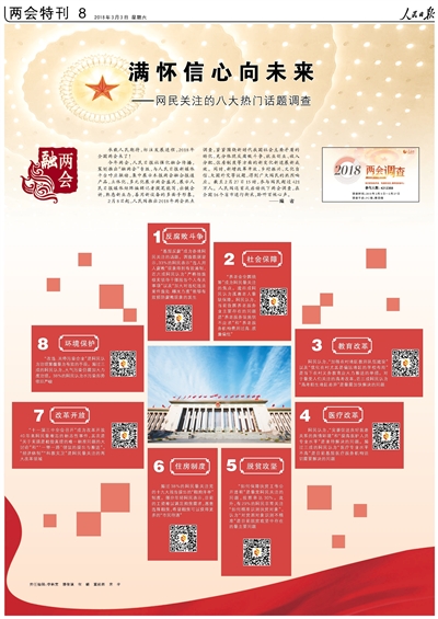 3月3日人民日报两会特刊8版整版报道人民网两会调查八大热门话题