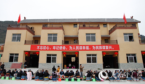 2月6日,河池市南丹县一排排崭新的乡村别墅之间,数百名白裤瑶同胞摆起长桌宴,敲铜鼓、打陀螺、舞狮子,用最隆重的方式庆祝自己搬出深山,挪出穷窝。