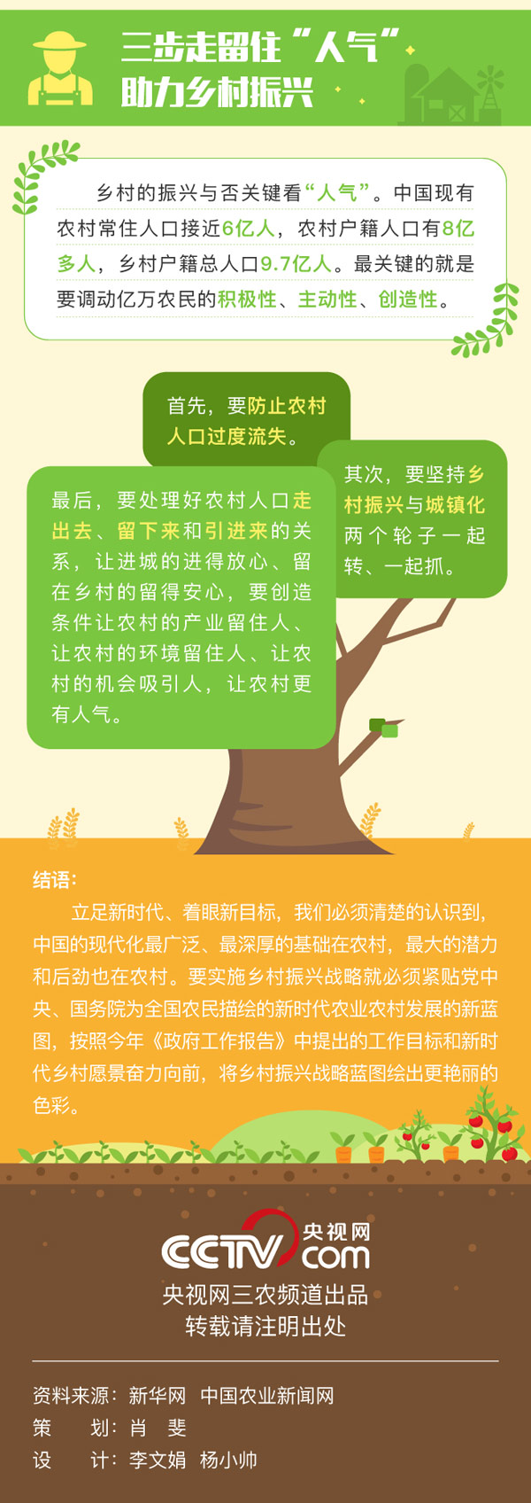 央视网消息:今年的《政府工作报告》中,“大力实施乡村振兴战略”被列为2018年需要扎实做好的9项工作之一,这也预示着今年必将是我国“三农”工作至关重要的一年。党的十九大报告提出了实施乡村振兴战略,今年的中央一号文件给出了党和国家层面的具体实施意见,加之今年也是改革开放40周年,新时代背景下,农业农村发展被提到前所未有的高度,乡村振兴已在中华大地孕育迸发,如何开好局、起好步,打好乡村振兴“四梁八柱”的基础尤为重要。